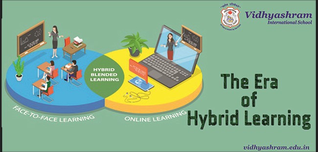 Hybrid Learning is an education model where the learner gets the benefits of online learning system like, online assignment, peer collaboration for project work, result analysis through web-based software, assessments using tools like Kahoot, polls, mind maps and many more. And, of physical classes conducted at school, where the child gets the scholastics and co-scholastic learning experiences. Hybrid learning works on 5i framework that are initiative, interaction, independent, incentive and improvement. Here, the learner takes the initiative to actively participate in both the offline and online modes of education, interact with their peers for educational sharing and collaboration, independently takes the responsibilities of their learning, gets incentives in the form of badges and certificates for activities conducted during the hybrid mode and gets the personalized instant feedback on their assessments.